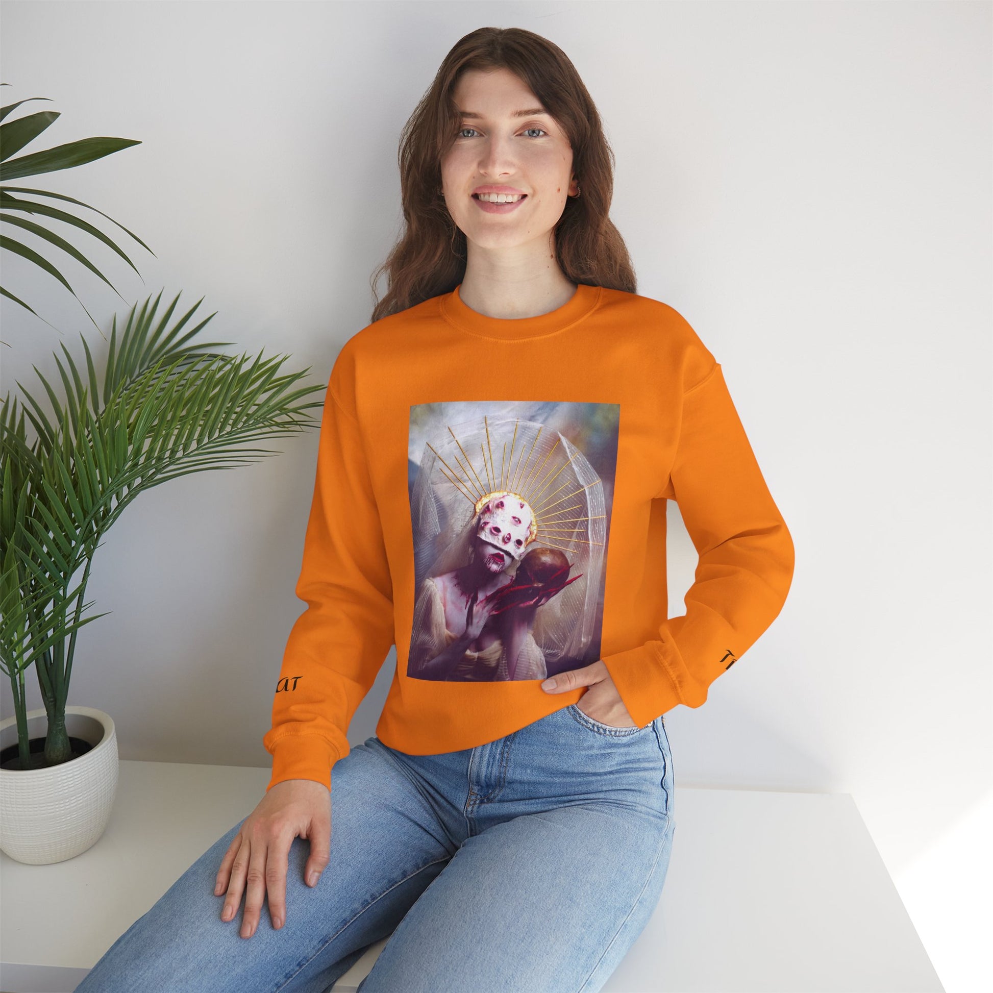 Introducing an eye-catching Unisex Heavy Blend™ Crewneck Sweatshirt that seamlessly blends comfort and unique style. Perfect for those chilly evenings, this sweatshirt provides a cozy embrace with its medium-heavy fabric blend of cotton and polyester. The vibrant orange hue adds a cheerful pop to any outfit, making it a stylish staple for your wardrobe. Whether you’re lounging at home or out with friends, this sweatshirt exudes an artistic vibe that reflects individuality and creativity.