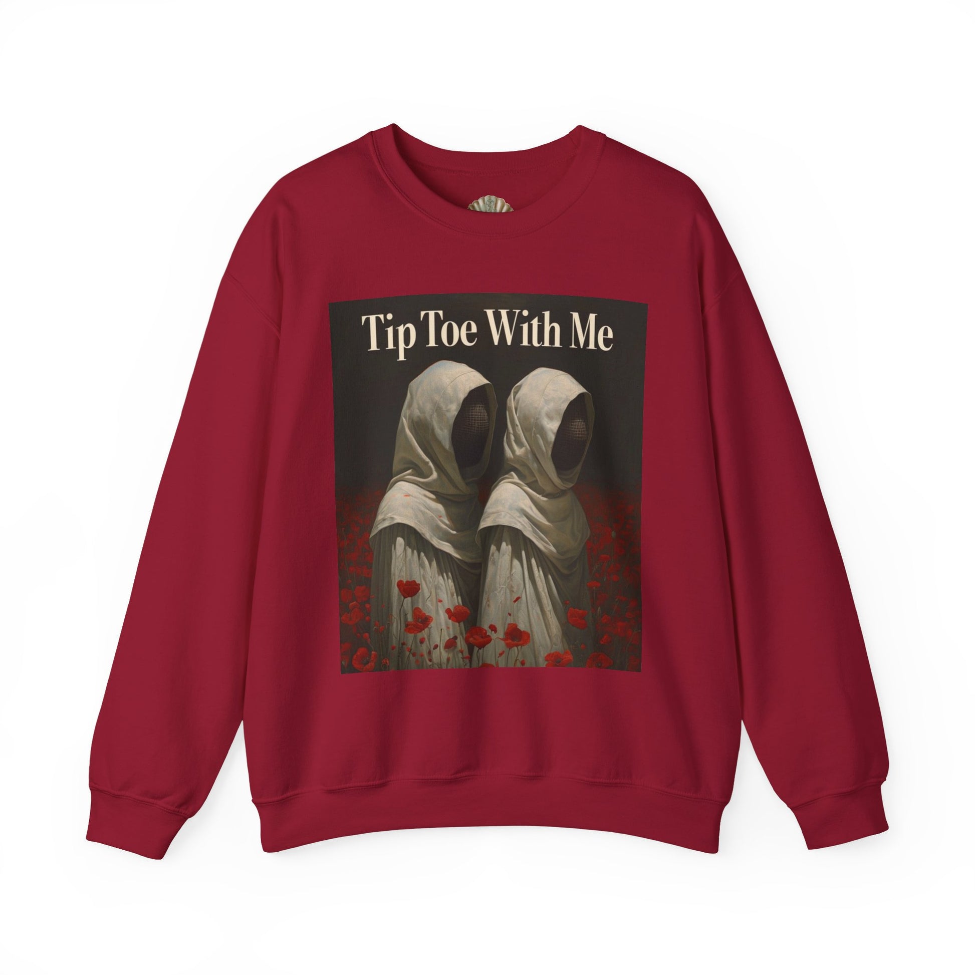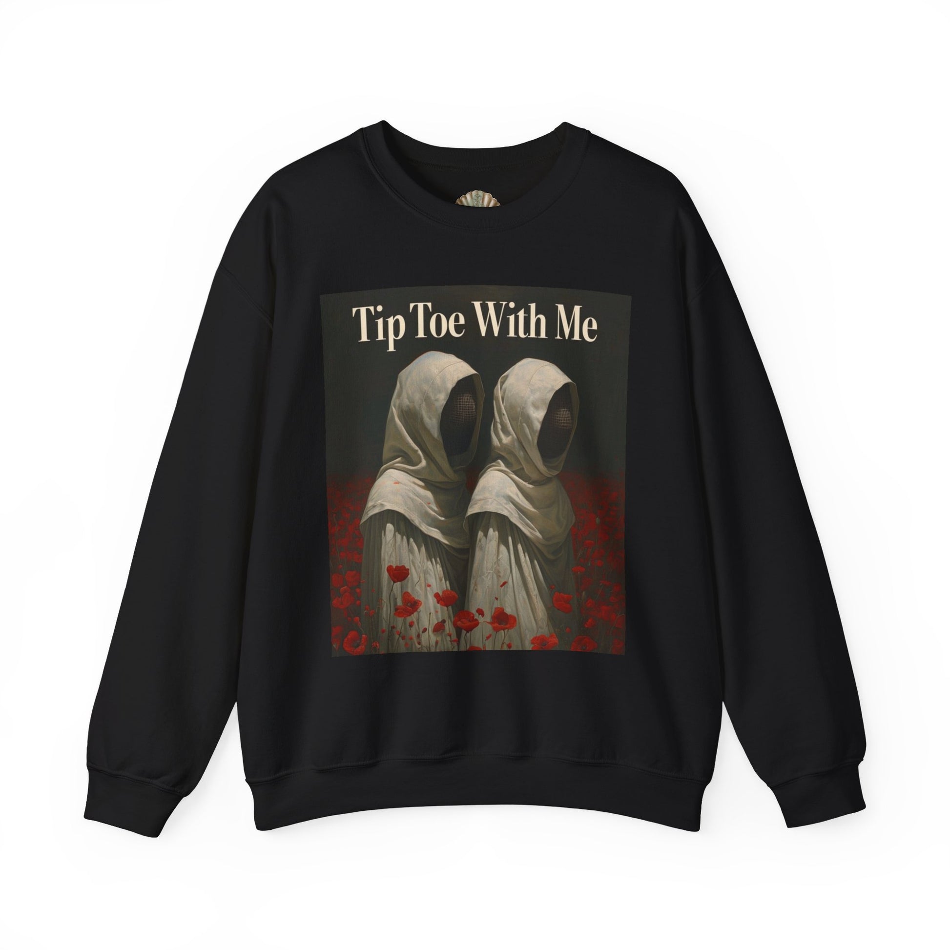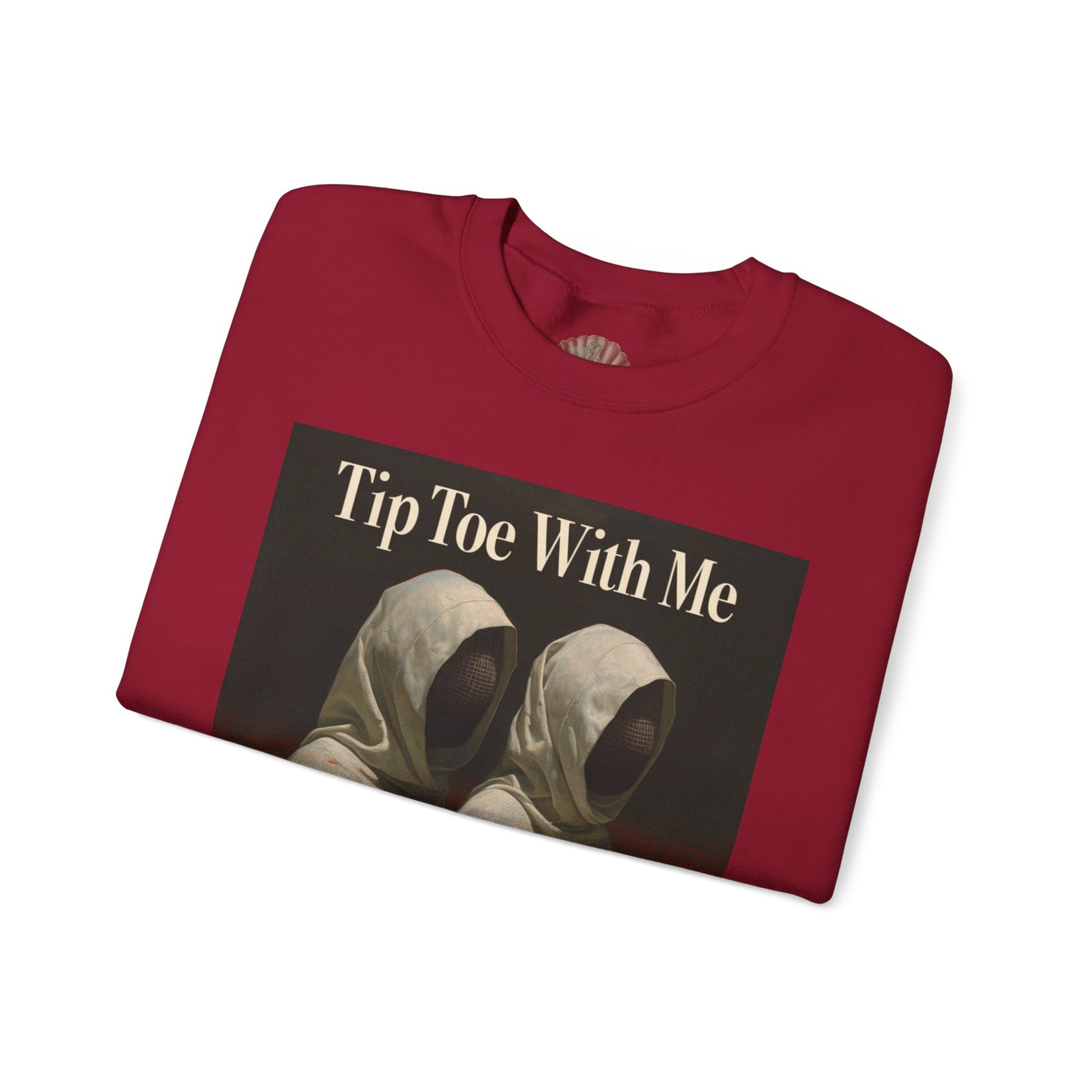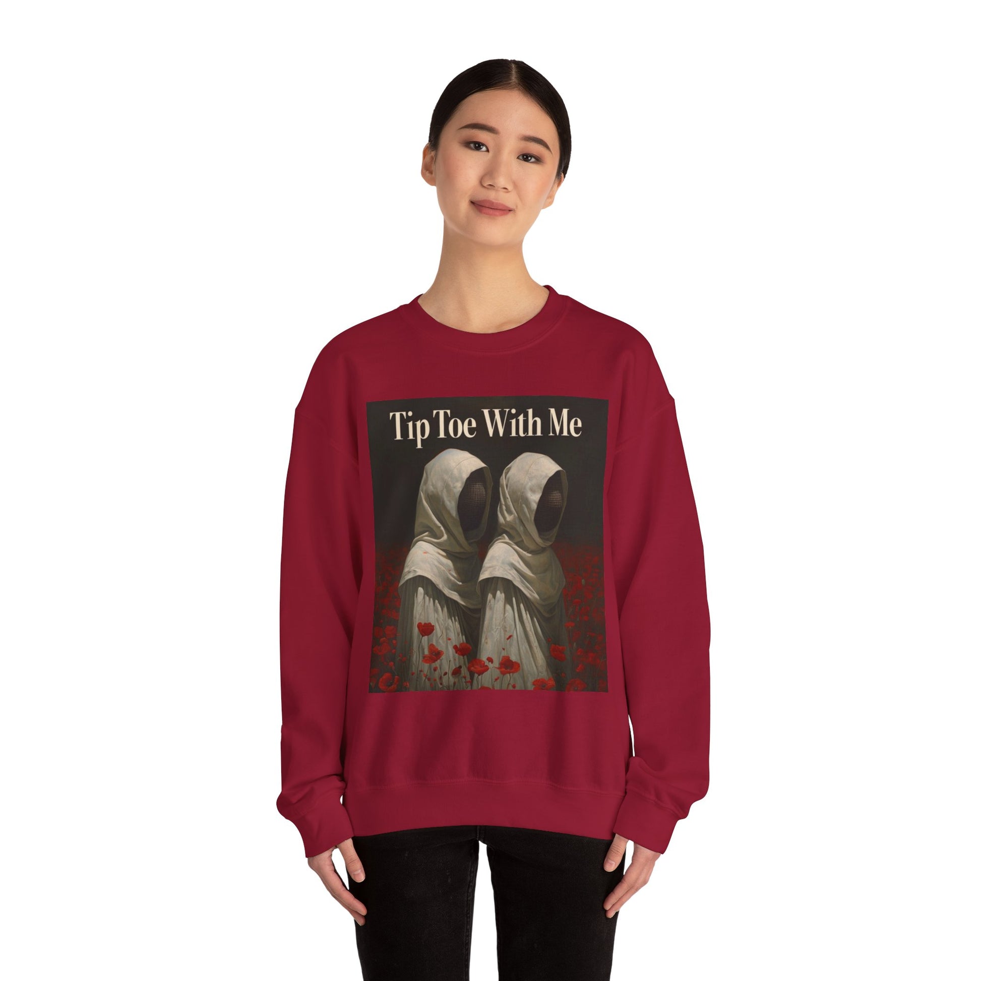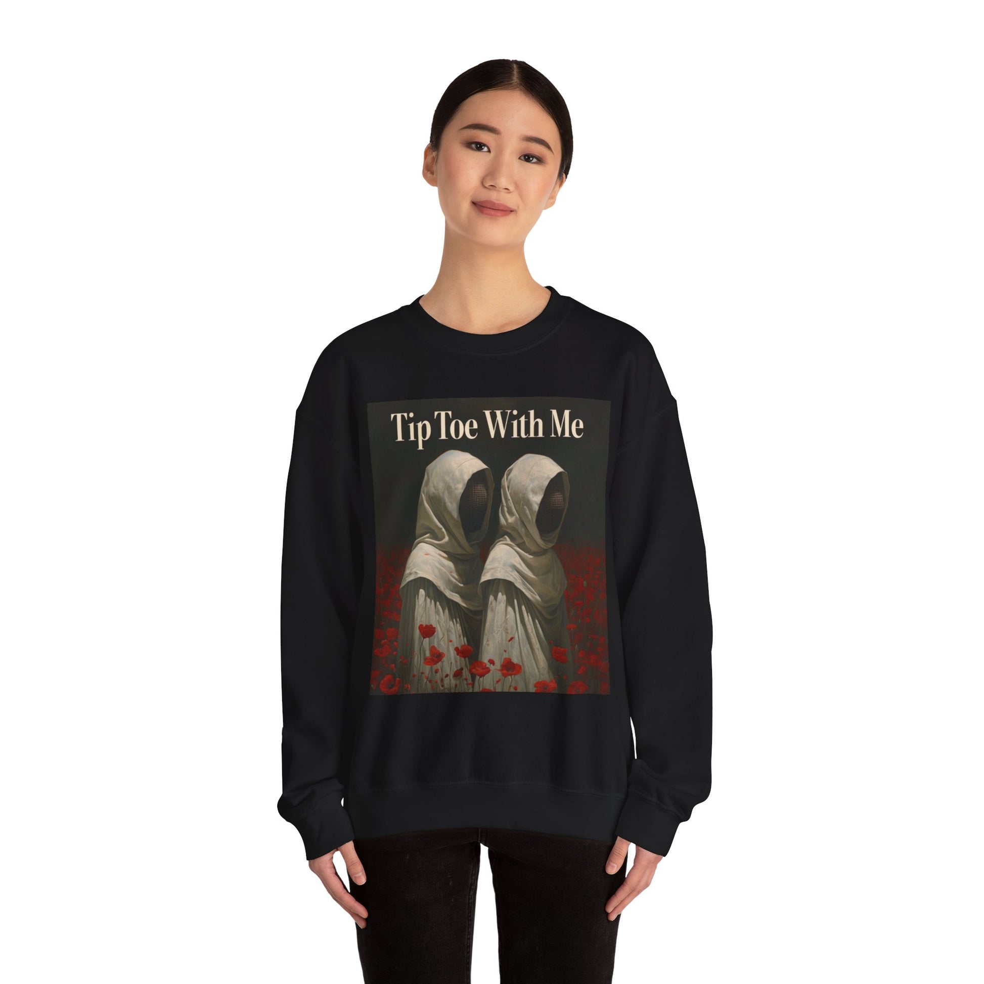 Ideal for any spooky occasion, a unisex heavy blend crewneck sweatshirt is pure comfort. The collar is ribbed knit, so it retains its shape even after washing. There are no itchy side seams on these sweaters. Tip Toe into our cozy sweatshirt perfect for the spooky season!